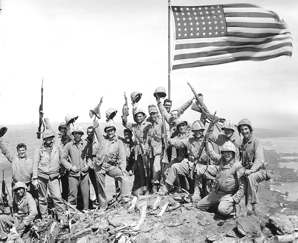The second flag raising atop Mount Suribachi, Iwo Jima, February 23, 1945